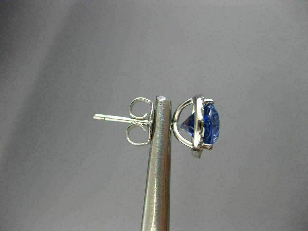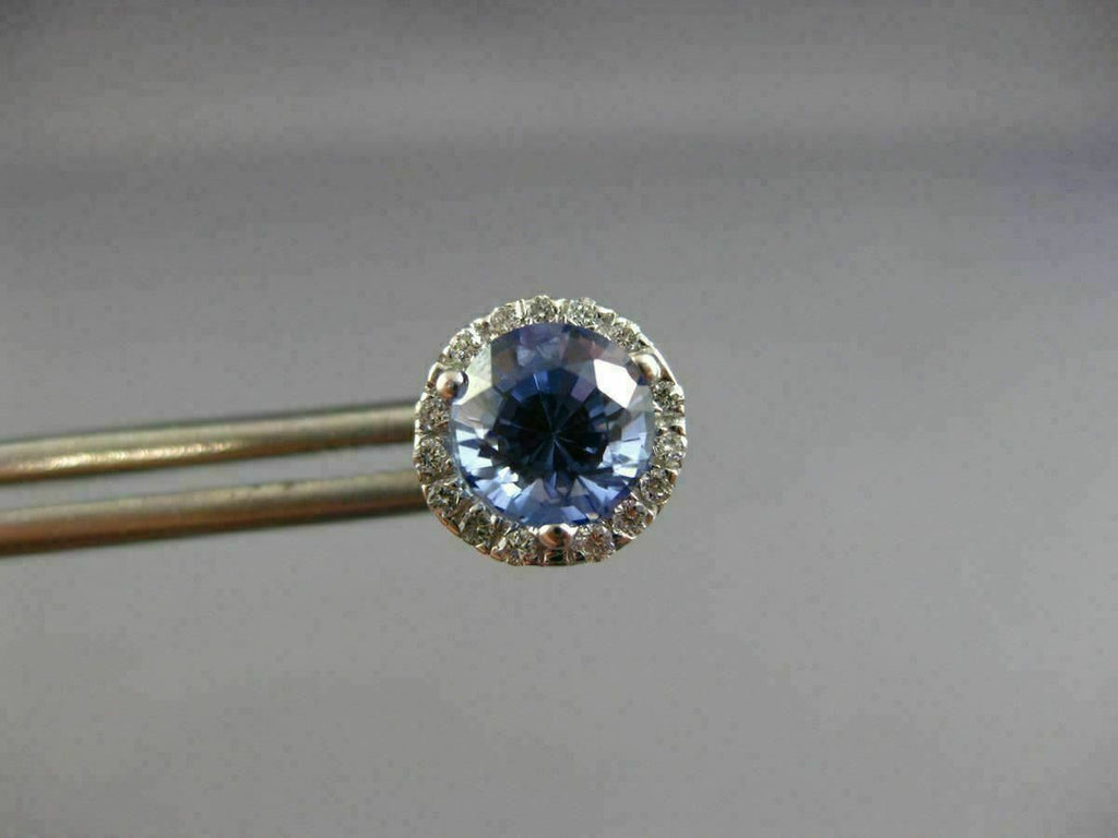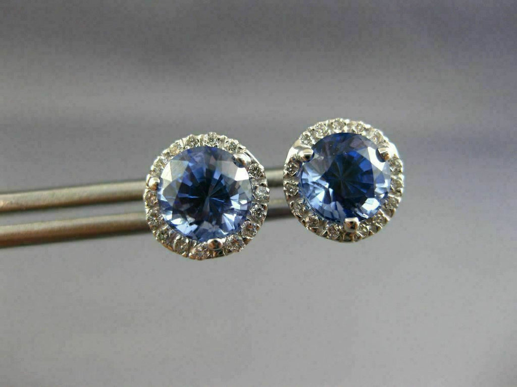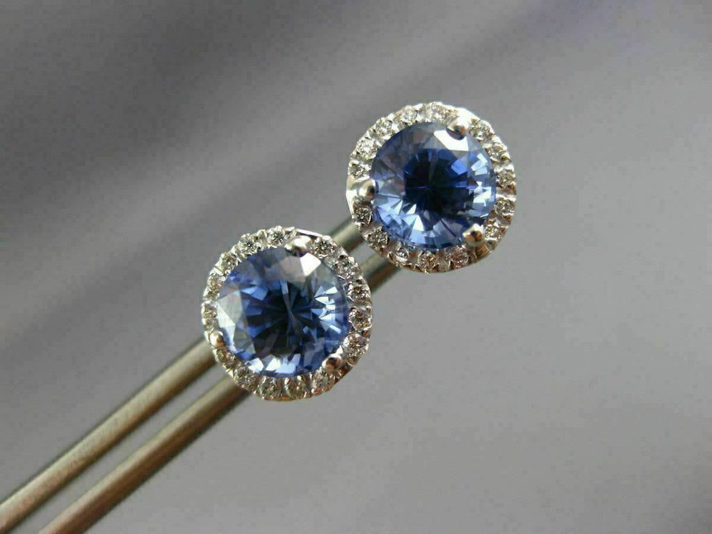 ESTATE 2.80CT DIAMOND & AAA SAPPHIRE 14KT WHITE GOLD 3D ROUND HALO STUD EARRINGS