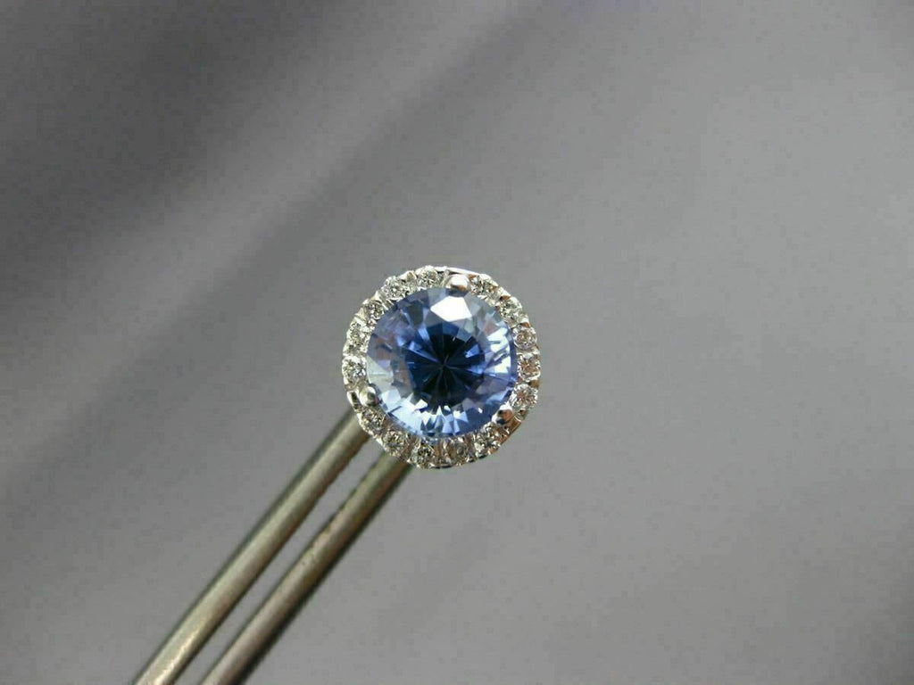 ESTATE 14KT WHITE GOLD STUD EARRINGS. 3D CLASSIC ROUND HALO DESIGN. DIAMONDS ARE F/G COLOR, VVS/VS CLARITY .16 CARATS. AAA SAPPHIRES ARE 2.64 CARATS. MEASURES 8MM WIDE. WRITTEN APPRAISAL AVAILABLE. COMES IN A PRESENTABLE GIFT BOX.