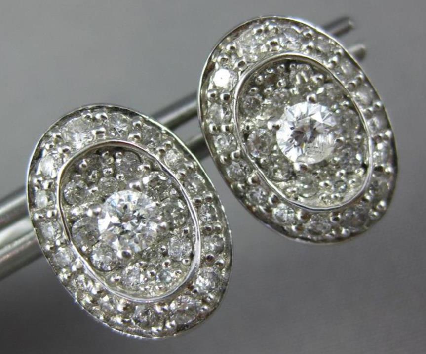 ESTATE 2.0CT DIAMOND 14K WHITE GOLD 3D ROUND OVAL FILIGREE CLUSTER STUD EARRINGS