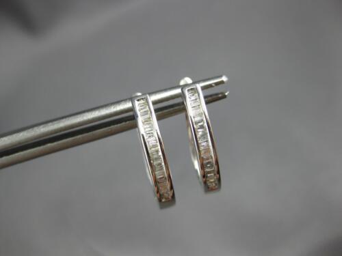 ESTATE .20CT DIAMOND 14KT WHITE GOLD 3D BAGUETTE CHANNEL OVAL HANGING EARRINGS