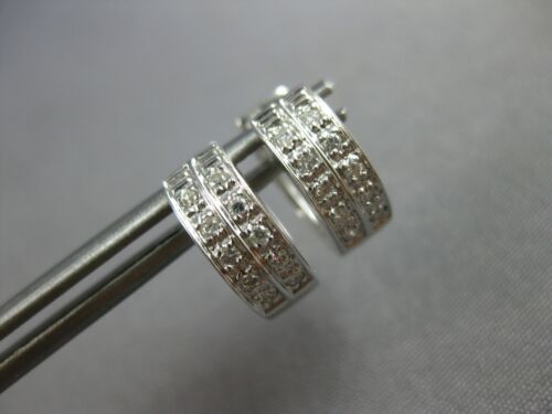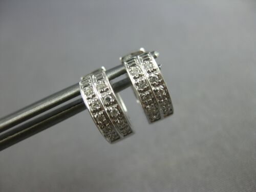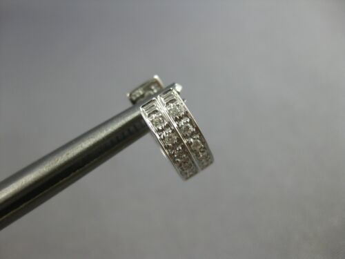 ESTATE 14KT WHITE GOLD HUGGIE EARRINGS. 3D CLASSIC TWO ROW FILIGREE DESIGN. ROUND DIAMONDS ARE F/G COLOR, VSSI CLARITY .20 CARATS. MEASURES 5mm X 13mm. WRITTEN APPRAISAL AVAILABLE. COMES IN A PRESENTABLE GIFT BOX.