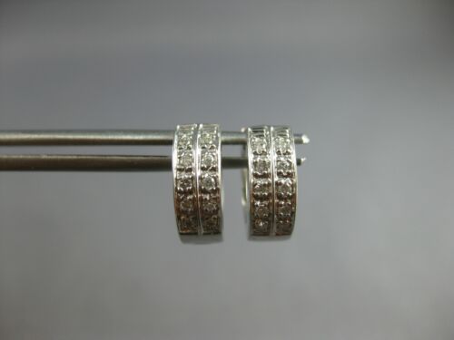 ESTATE .20CT DIAMOND 14KT WHITE GOLD 3D CLASSIC 2 ROW FILIGREE HUGGIE EARRINGS