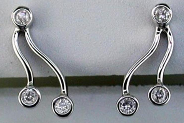 ESTATE 14KT WHITE GOLD FUN EARRINGS. 3D CLASSIC ETOILE DOUBLE WAVE DESIGN. DIAMONDS ARE F/G COLOR, VSSI CLARITY .20 CARATS. WRITTEN APPRAISAL AVAILABLE. COMES IN A PRESENTABLE GIFT BOX.