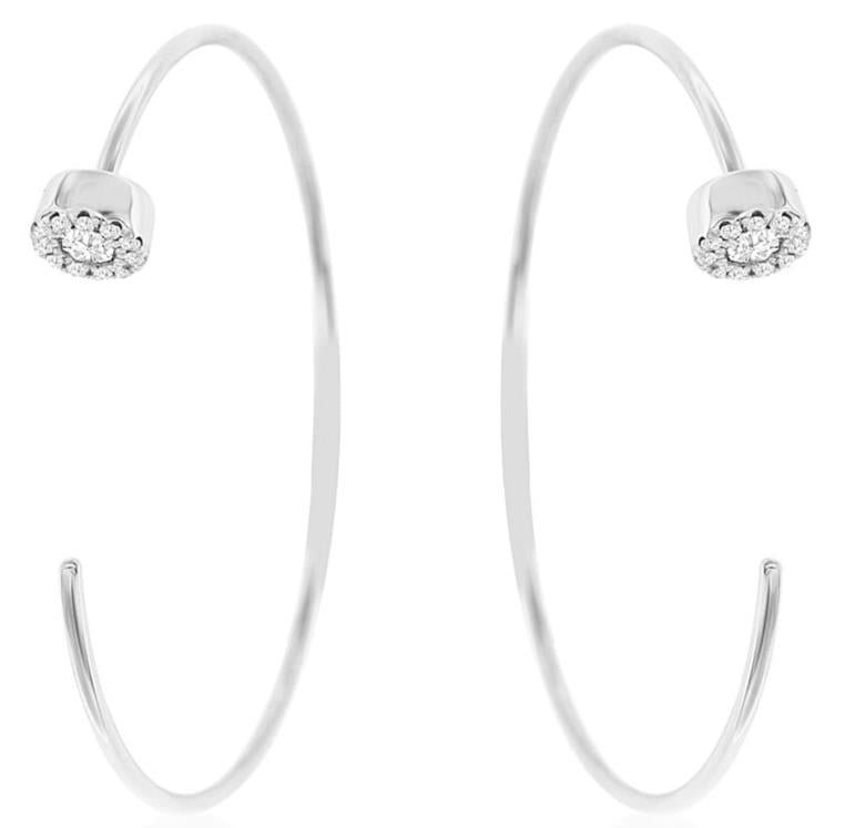 ESTATE 14KT WHITE GOLD FUN HOOP HANGING EARRINGS. 3D FLOWER DESIGN. DIAMONDS ARE F/G COLOR, VSSI CLARITY .20 CARATS. WRITTEN APPRAISAL AVAILABLE. COMES IN A PRESENTABLE GIFT BOX.
