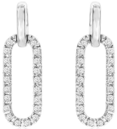 ESTATE 14KT WHITE FUN HANGING EARRINGS. 3D CLASSIC OPEN OVAL DESIGN. DIAMONDS ARE F/G COLOR, VSSI CLARITY .20 CARATS. WRITTEN APPRAISAL AVAILABLE. COMES IN A PRESENTABLE GIFT BOX.
