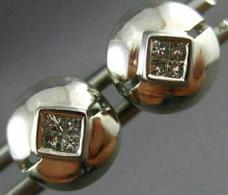 ESTATE .20CT DIAMOND 14KT WHITE GOLD 3D PRINCESS INVISIBLE ROUND STUD EARRINGS