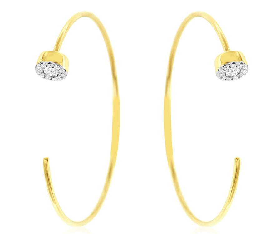 ESTATE 14KT YELLOW GOLD FUN CUFF EARRINGS. 3D FLOWER HOOP DESIGN. DIAMONDS ARE F/G COLOR, VSSI CLARITY .20 CARATS. WRITTEN APPRAISAL AVAILABLE. COMES IN A PRESENTABLE GIFT BOX.
