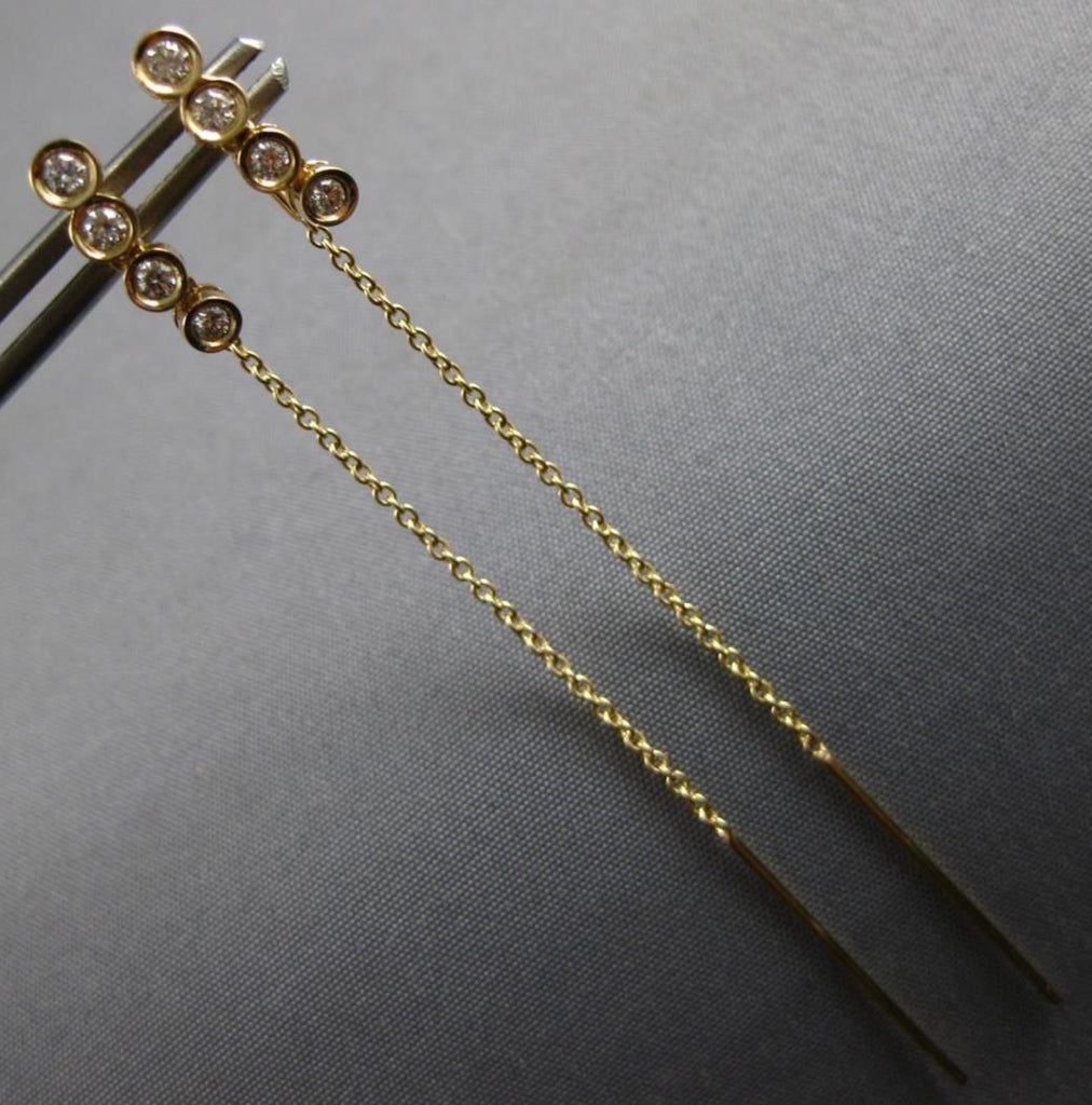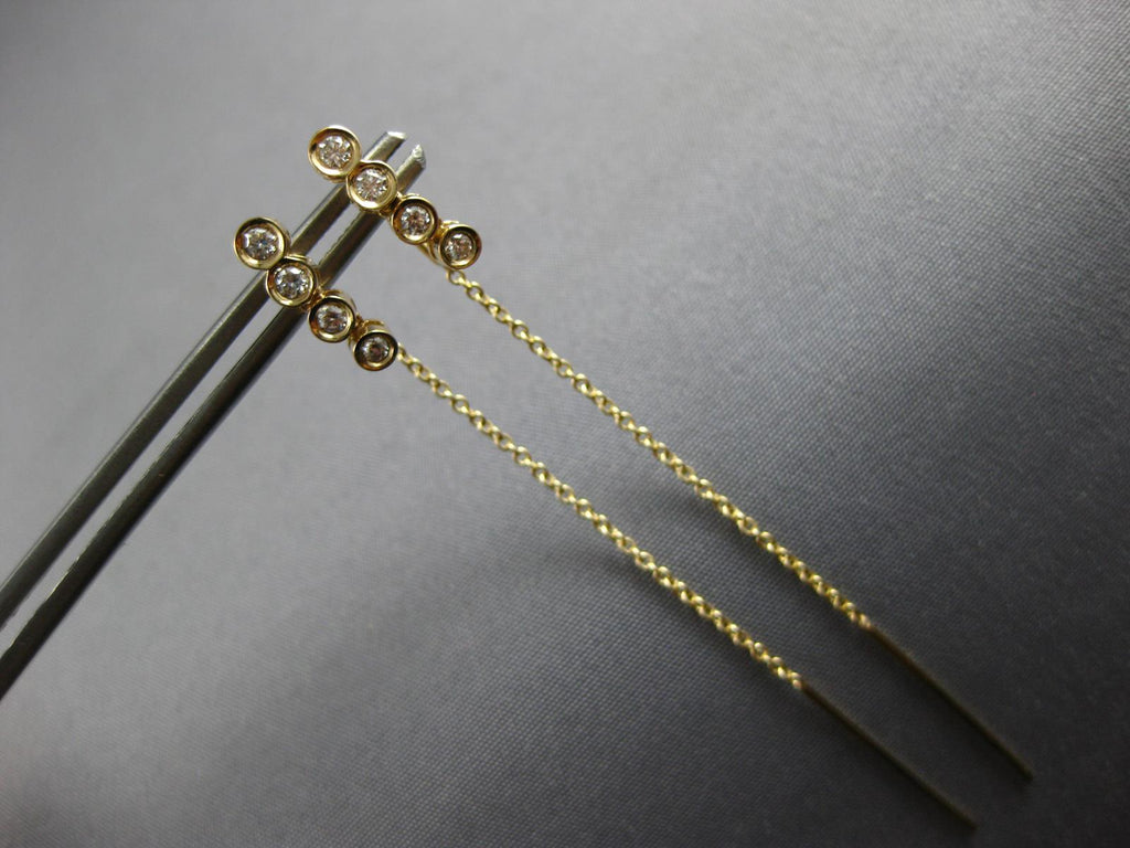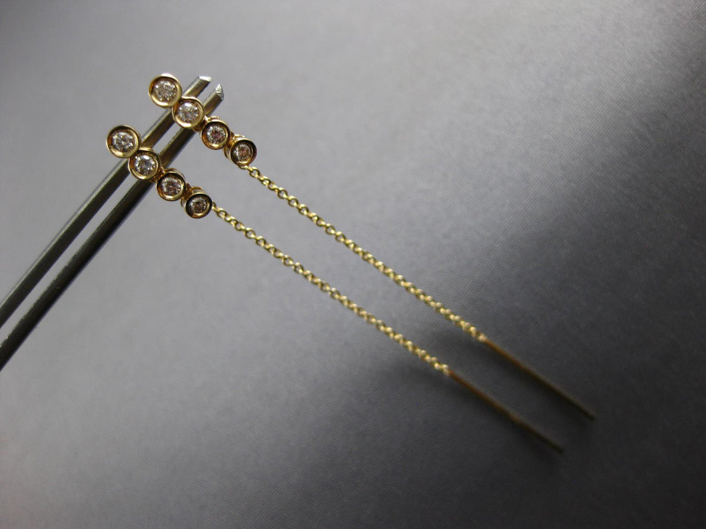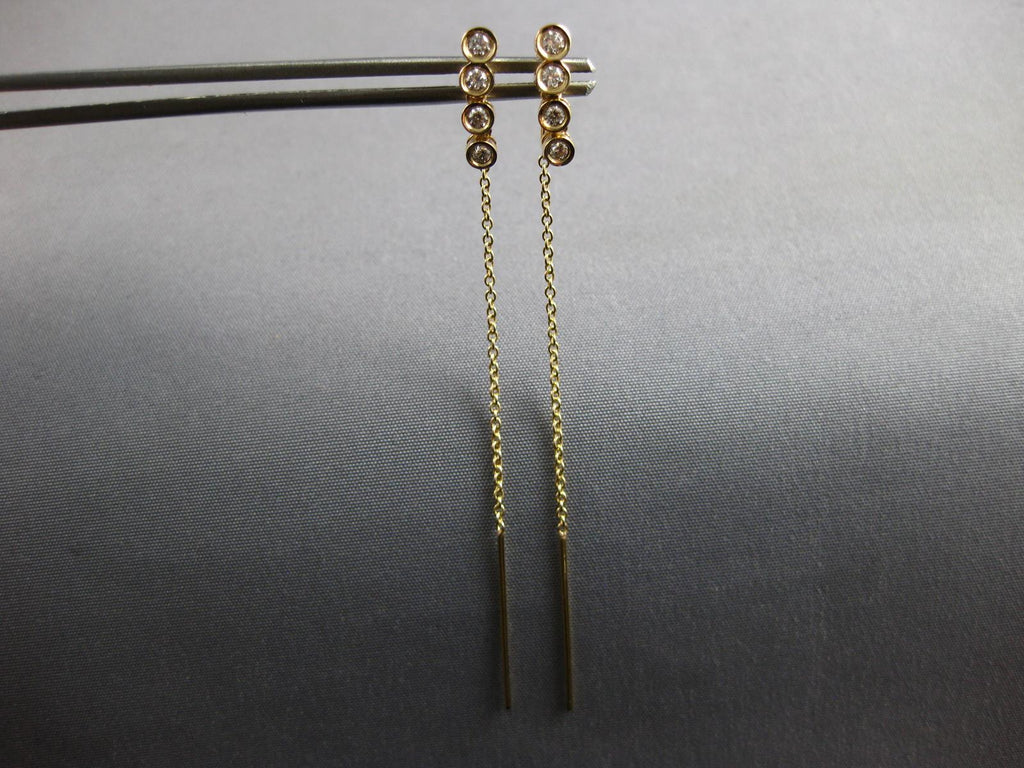 ESTATE 14KT YELLOW GOLD FUN HANGING EARRINGS. 3D CLASSIC FOUR STONE CHANDELIER BEZEL DESIGN. ROUND DIAMONDS ARE F/G COLOR, VVS-VS CLARITY .20 CARATS. MEASURES 70mm X 3mm. WRITTEN APPRAISAL AVAILABLE. COMES IN A PRESENTABLE GIFT BOX.