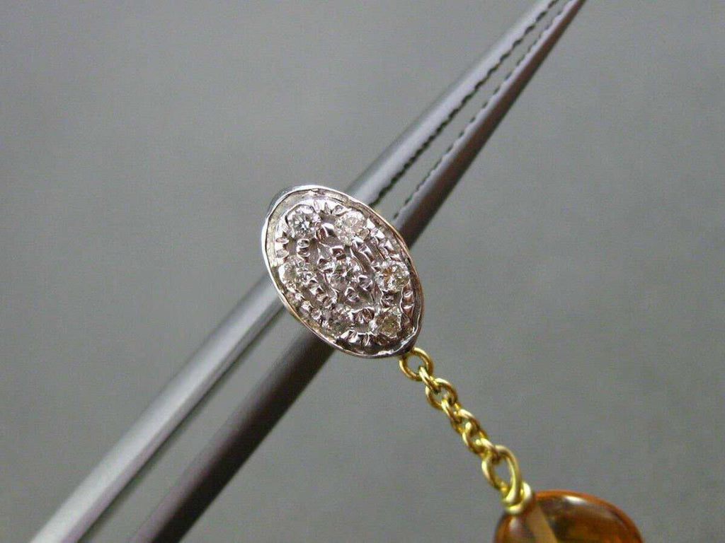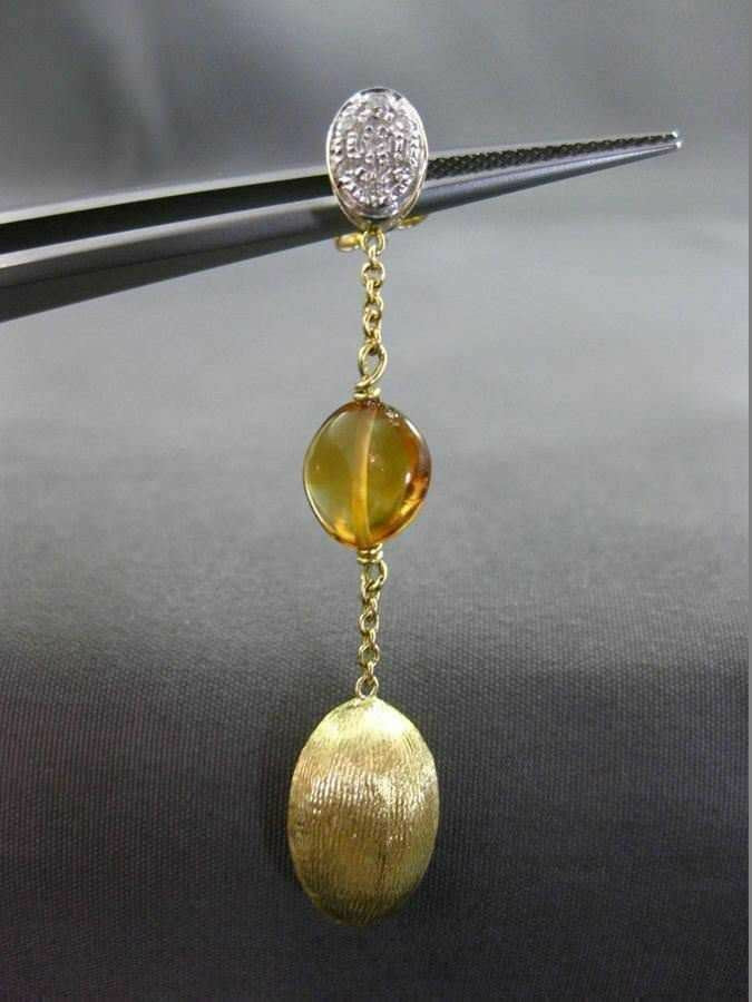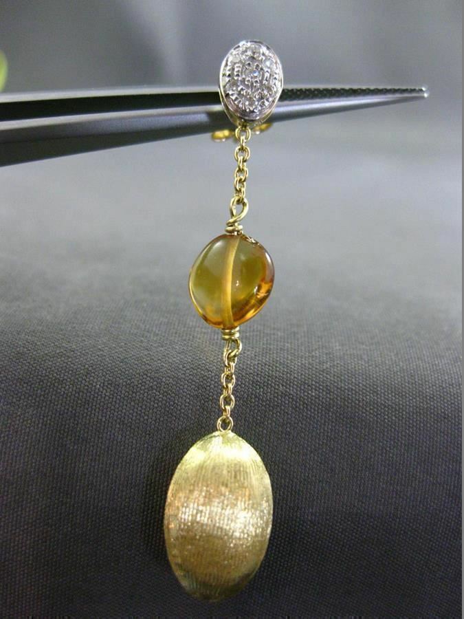 ESTATE .21CT DIAMOND & CITRINE 18KT TWO TONE GOLD 3D OVAL ROUND HAMMER EARRINGS