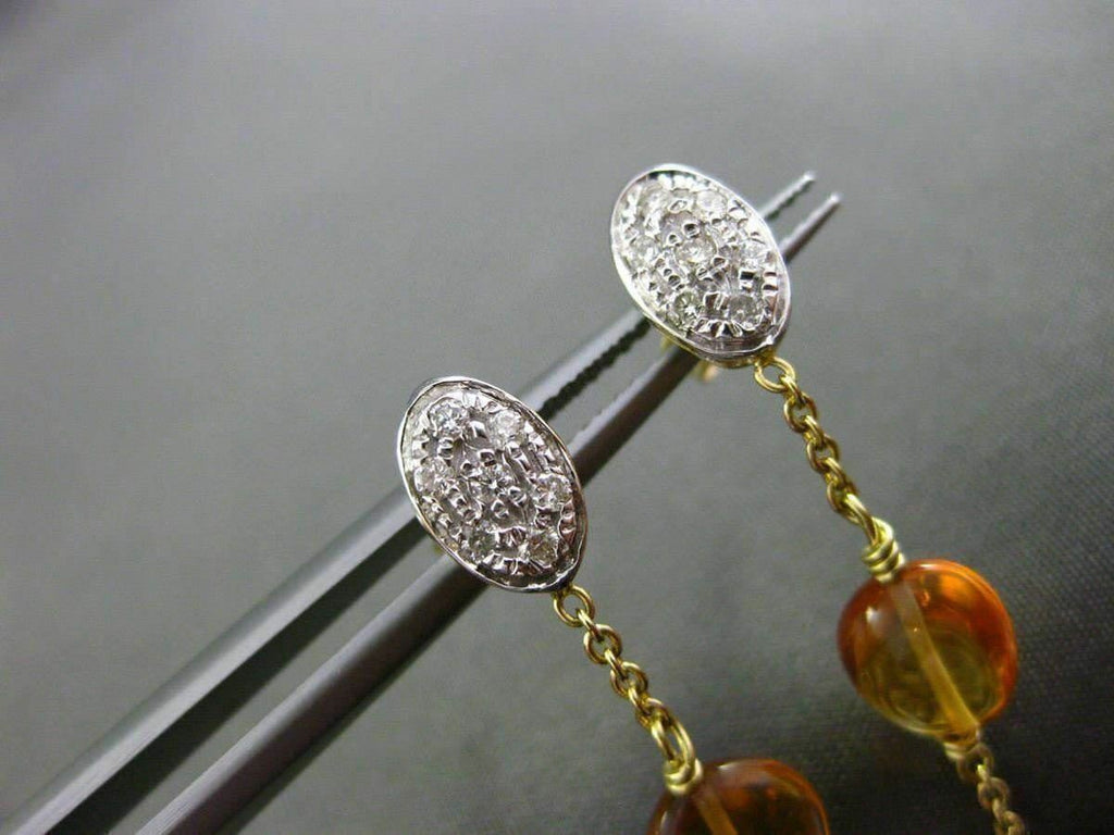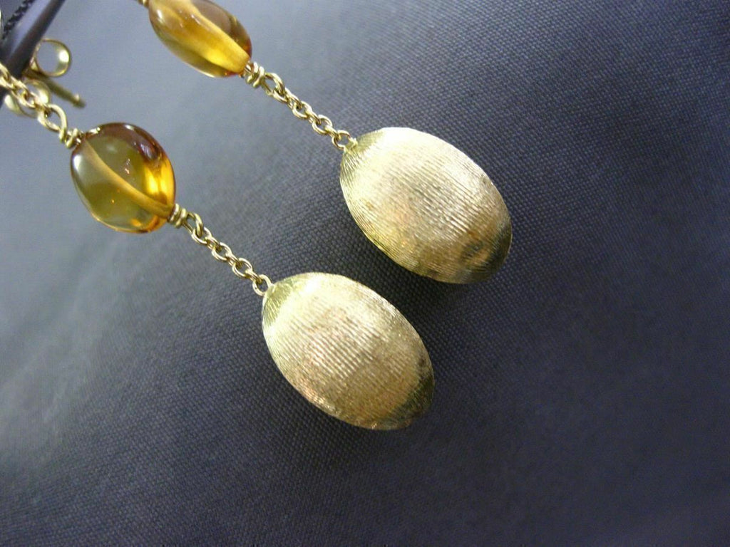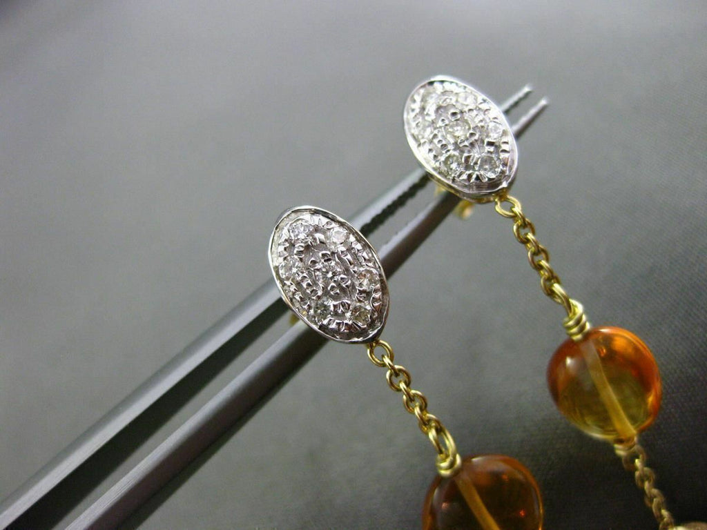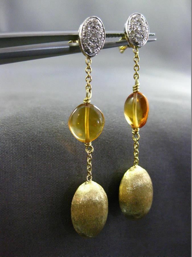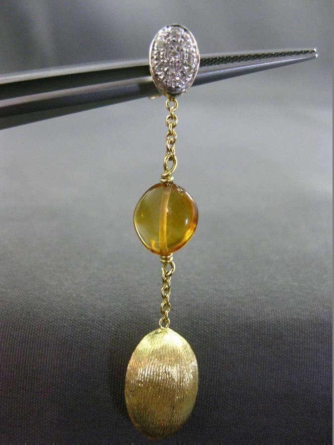 ESTATE 18KT WHITE & YELLOW GOLD HANGING EARRINGS. 3D, OVAL & ROUND, MATTE & SHINY, HAMMER DESIGN. DIAMONDS ARE F/G COLOR, VSSI CLARITY .21 CARATS. FEATURES AAA CITRINE. MEASURES 45mm X 9mm WIDE. WRITTEN APPRAISAL AVAILABLE. COMES IN A PRESENTABLE GIFT BOX