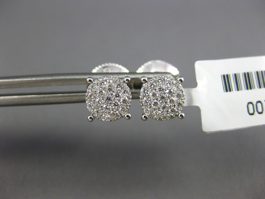 ESTATE .22CT DIAMOND 18KT WHITE GOLD 3D CIRCULAR CLUSTER PAVE STUD EARRINGS