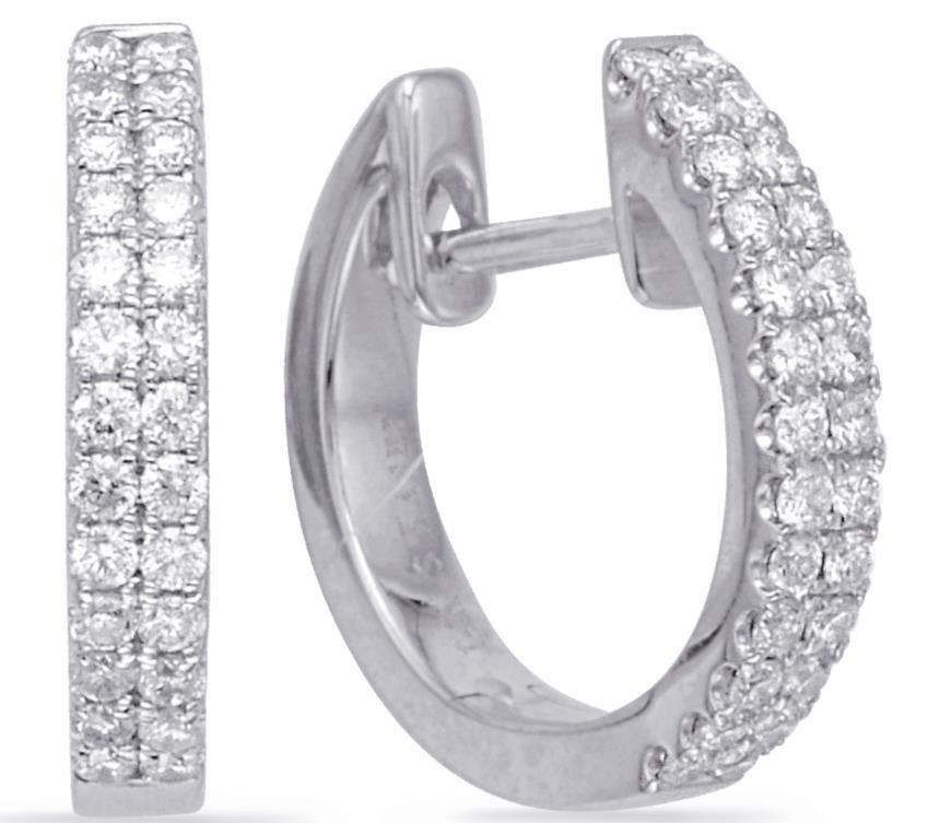 ESTATE 14KT WHITE GOLD HUGGIE HANGING EARRINGS. 3D CLASSIC TWO ROW DESIGN. ROUND DIAMONDS ARE F/G COLOR, VSSI CLARITY .24 CARATS. MEASURES 2mm WIDE. WRITTEN APPRAISAL AVAILABLE. COMES IN A PRESENTABLE GIFT BOX.