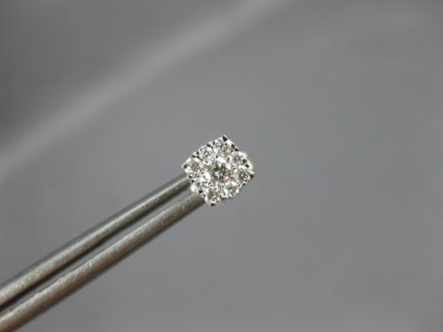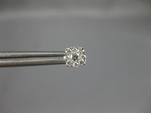 ESTATE 14KT WHITE GOLD STUD EARRINGS. 3D CLASSIC SQUARE CLUSTER DESIGN. ROUND DIAMONDS ARE F/G COLOR, VSSI CLARITY .25 CARATS. MEASURES 5mm WIDE. WRITTEN APPRAISAL AVAILABLE. COMES IN A PRESENTABLE GIFT BOX.