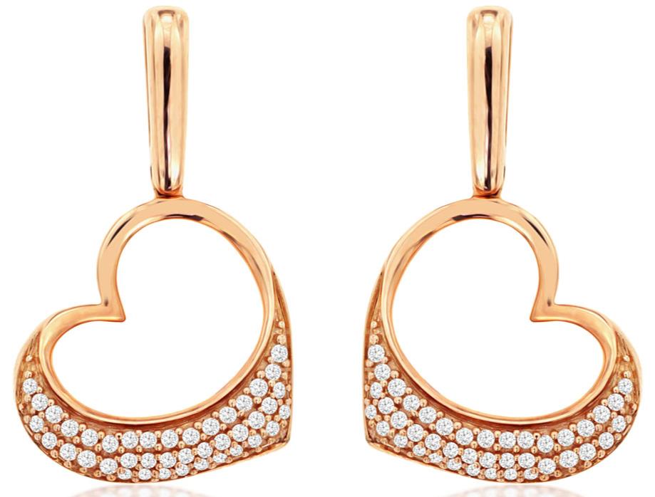 ESTATE 14KT ROSE GOLD LOVE HANGING EARRINGS. 3D CLASSIC OPEN HEART DESIGN. DIAMONDS ARE F/G COLOR, VSSI CLARITY .25 CARATS. WRITTEN APPRAISAL AVAILABLE. COMES IN A PRESENTABLE GIFT BOX.