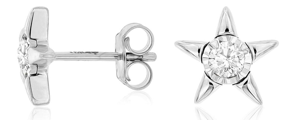 ESTATE 14KT WHITE GOLD FUN STUD EARRINGS. 3D CLASSIC SOLITAIRE STAR DESIGN. DIAMONDS ARE F/G COLOR, VSSI CLARITY .25 CARATS. WRITTEN APPRAISAL AVAILABLE. COMES IN A PRESENTABLE GIFT BOX.