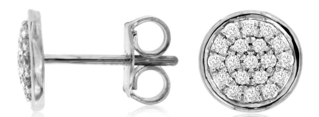 ESTATE 14KT WHITE GOLD STUD EARRINGS. 3D CLUSTER BEZEL FLOWER DESIGN. DIAMONDS ARE F/G COLOR, VSSI CLARITY .25 CARATS. WRITTEN APPRAISAL AVAILABLE. COMES IN A PRESENTABLE GIFT BOX.