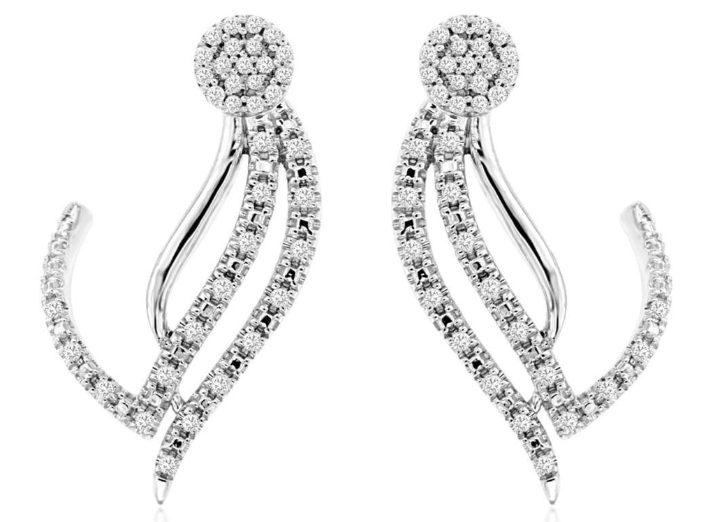ESTATE 14KT WHITE GOLD FUN HANGING EARRINGS. 3D CLUSTER FLOWER LEAF DESIGN. DIAMONDS ARE F/G COLOR, VSSI CLARITY .25 CARATS. WRITTEN APPRAISAL AVAILABLE. COMES IN A PRESENTABLE GIFT BOX.