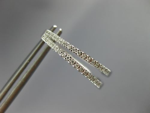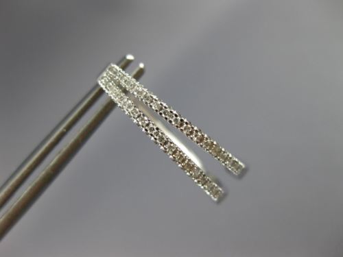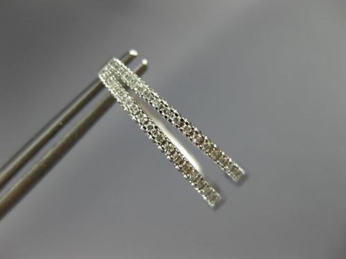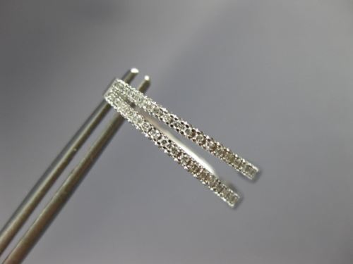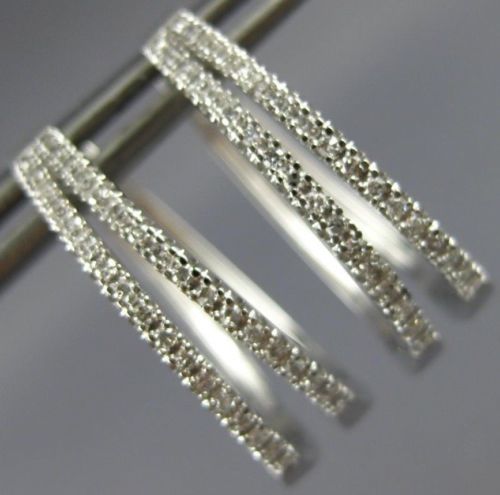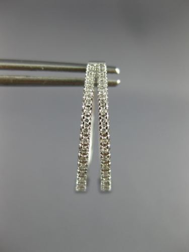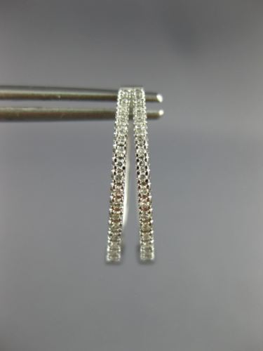 ESTATE 14KT WHITE GOLD HOOP EARRINGS. 3D CLASSIC TWO ROW TRIANGULAR OVAL DESIGN. DIAMONDS ARE F/G COLOR, VSSI CLARITY .25 CARATS. MEASURES 20mm X 5mm. WRITTEN APPRAISAL AVAILABLE. COMES IN A PRESENTABLE GIFT BOX.