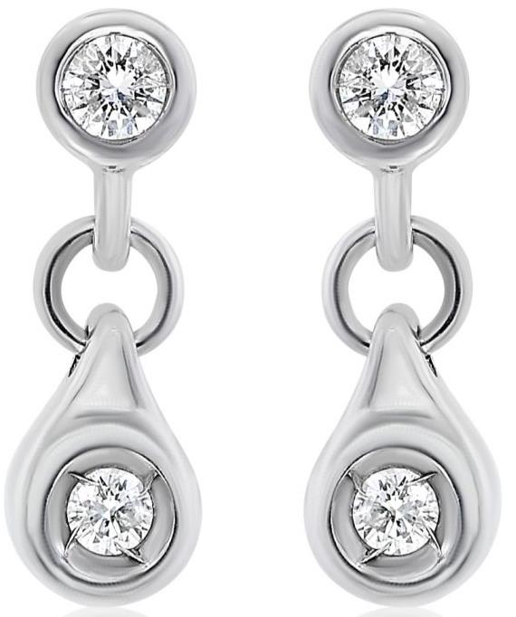 ESTATE 14KT WHITE GOLD LEVERBACK HANGINGEARRINGS. 3D BEZEL CLASSIC TEAR DROP DESIGN. DIAMONDS ARE F/G COLOR, VSSI CLARITY .25 CARATS. WRITTEN APPRAISAL AVAILABLE. COMES IN A PRESENTABLE GIFT BOX.