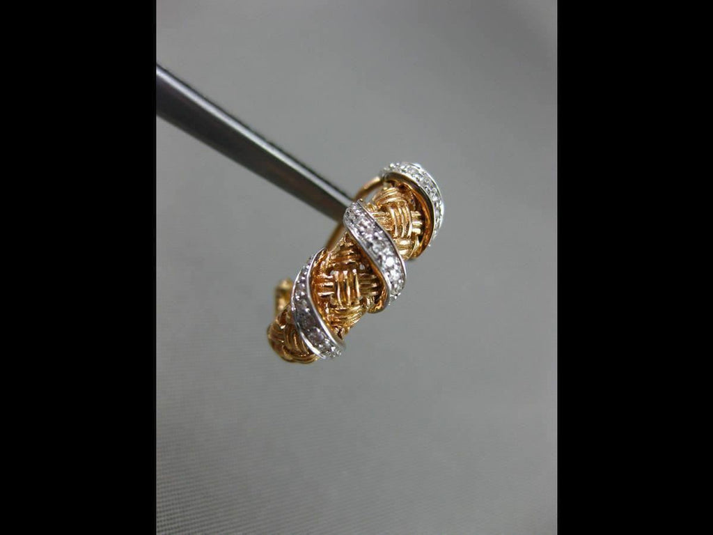 ESTATE .25CT DIAMOND 14KT WHITE & ROSE GOLD 3D WOVEN MULTI ROW SWIRL EARRINGS