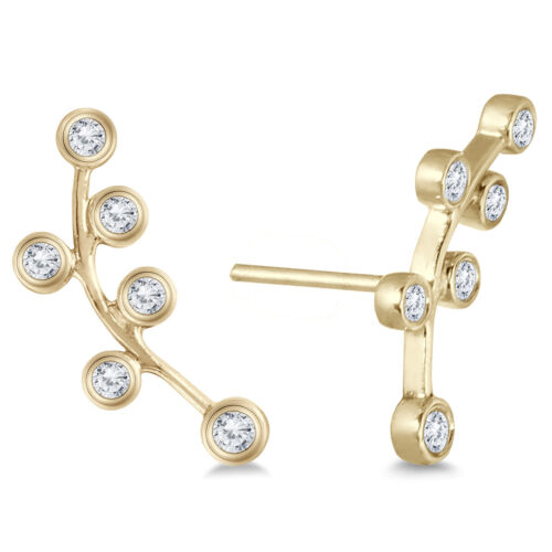 ESTATE 14KT YELLOW GOLD EAR CLIMBER EARRINGS. 3D CLASSIC BEZEL MULTI LEAF DESIGN. DIAMONDS ARE H/I COLOR, SI CLARITY .25 CARATS. WRITTEN APPRAISAL AVAILABLE. COMES IN A PRESENTABLE GIFT BOX.