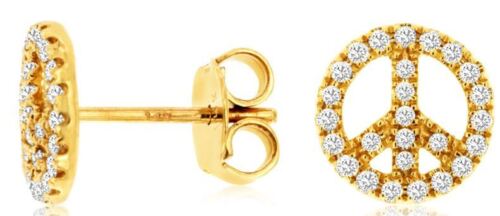 ESTATE 14KT YELLOW GOLD STUD EARRINGS. 3D CLASSIC CIRCULAR PEACE SIGN DESIGN. DIAMONDS ARE F/G COLOR, VSSI CLARITY .25 CARATS. WRITTEN APPRAISAL AVAILABLE. COMES IN A PRESENTABLE GIFT BOX.