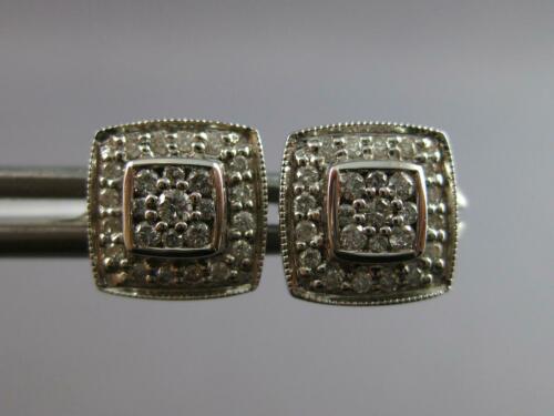 ESTATE .25CT DIAMOND 18KT WHITE GOLD CLUSTER SQUARE HALO FILIGREE STUD EARRINGS
