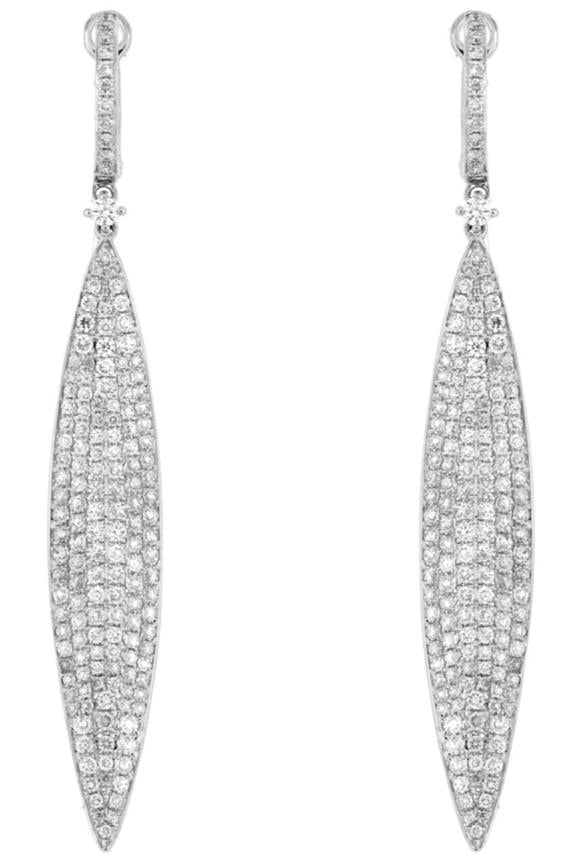 ESTATE 14KT WHITE GOLD HANGING EARRINGS. 3D CLUSTER LEAF TEAR DROP DESIGN. DIAMONDS ARE F/G COLOR, VSSI CLARITY 2.65 CARATS. WRITTEN APPRAISAL AVAILABLE. COMES IN A PRESENTABLE GIFT BOX.
