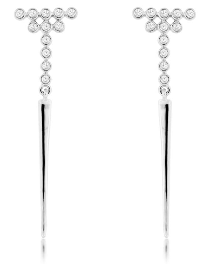 ESTATE .26CT DIAMOND 14KT WHITE GOLD 3D CLASSIC BEZEL T SHAPE HANGING EARRINGS