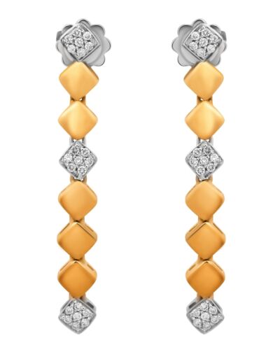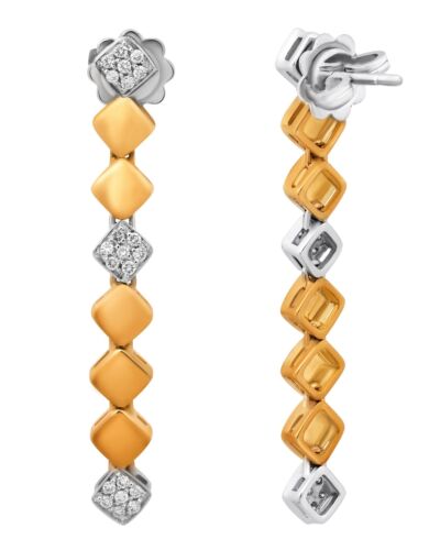ESTATE .26CT DIAMOND 18KT TWO TONE GOLD 3D CLUSTER GEOMETRICAL HANGING EARRINGS