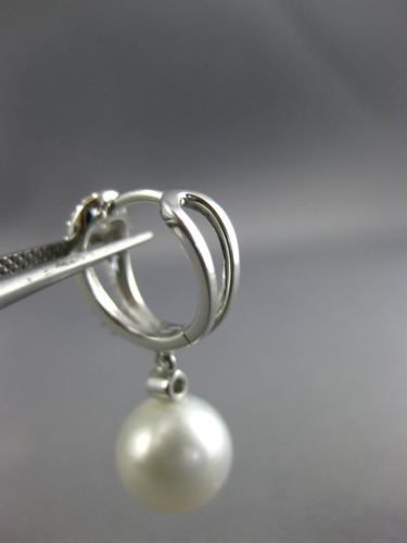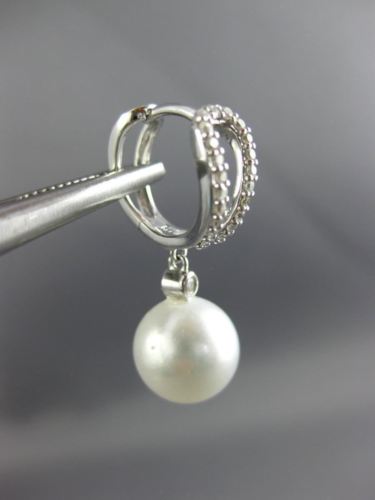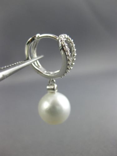 ESTATE 14KT WHITE GOLD HUGGIE HANGING EARRINGS. 3D CLASSIC ETOILE DESIGN. DIAMONDS ARE F/G COLOR VSSI CLARITY .26 CARATS. FEATURES AAA SOUTH SEA PEARLS 9mm WIDE. MEASURES 25mm X 5mm. WRITTEN APPRAISAL AVAILABLE. COMES IN A PRESENTABLE GIFT BOX.