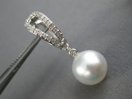 ESTATE .26CT DIAMOND & AAA SOUTH SEA PEARL 14KT WHITE GOLD 3D HANGING EARRINGS
