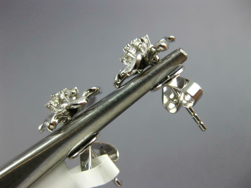 ESTATE .27CT DIAMOND 18KT WHITE GOLD CLASSIC FLOWER MATTE & SHINY STUD EARRINGS