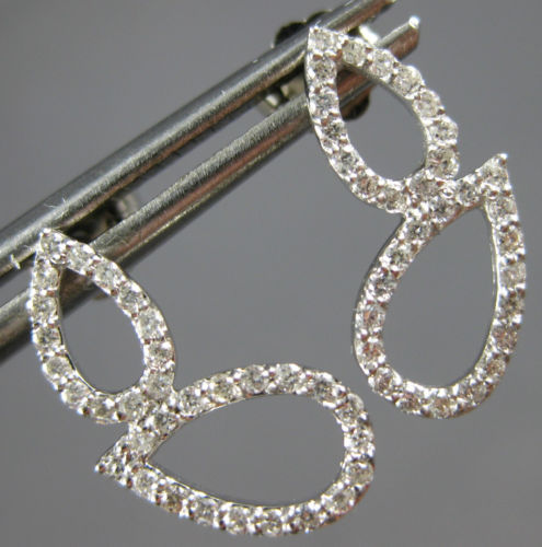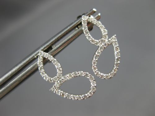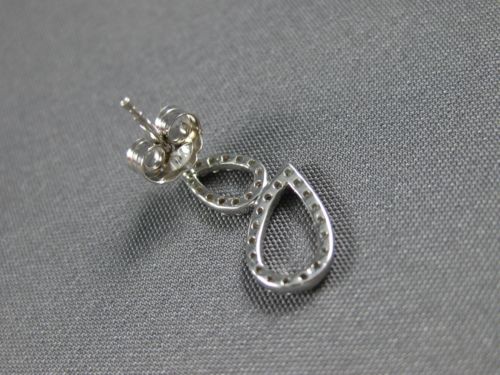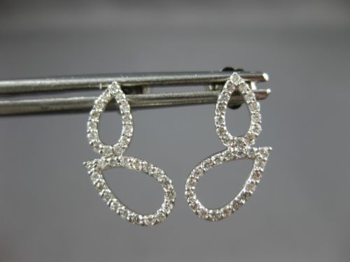 ESTATE .28CT DIAMOND 14KT WHITE GOLD 3D OPEN TEAR DROP HANGING FUN EARRINGS