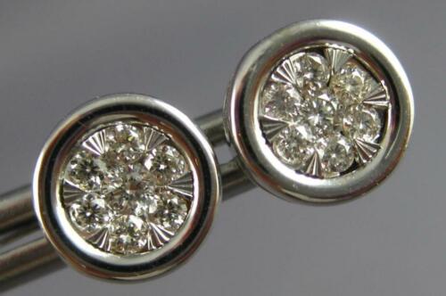 ESTATE .28CT DIAMOND 14KT WHITE GOLD ROUND INVISIBLE BEZEL CLUSTER STUD EARRINGS
