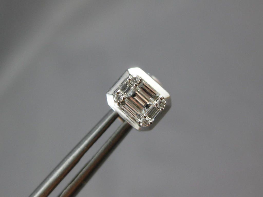 ESTATE .28CT DIAMOND 18KT WHITE GOLD ROUND & BAGUETTE RECTANGULAR STUD EARRINGS