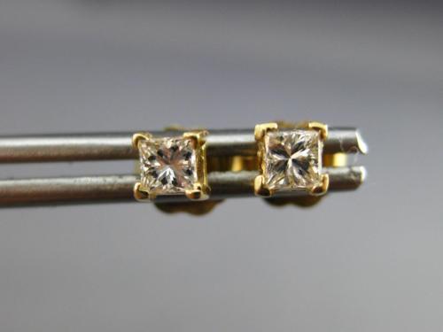 ESTATE .28CT PRINCESS CUT DIAMOND 14KT YELLOW GOLD CLASSIC STUD EARRINGS #14267