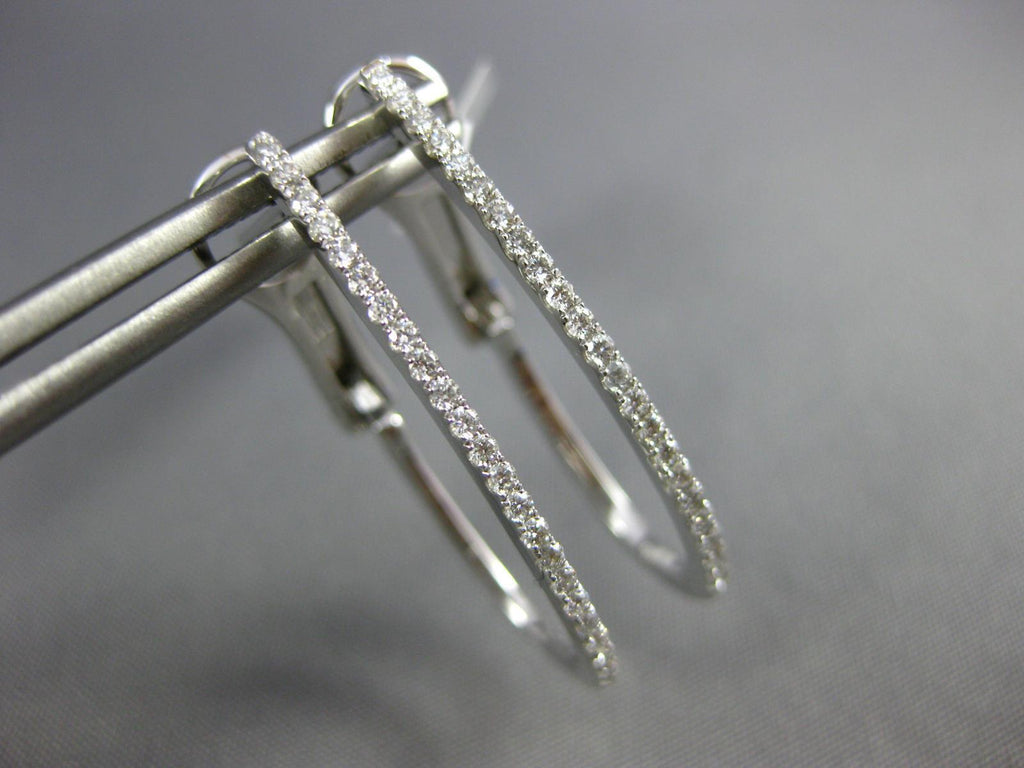 ESTATE .29CT DIAMOND 18KT WHITE GOLD 3D CLASSIC LONG OVAL HOOP CLIP ON EARRINGS