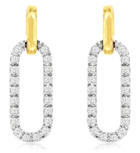 ESTATE 14KT WHITE AND YELLOW GOLD FUN HANGING EARRINGS. 3D CLASSIC OPEN OVAL DESIGN. ROUND DIAMONDS ARE F/G COLOR, VSSI CLARITY .20 CARATS. WRITTEN APPRAISAL AVAILABLE. COMES IN A PRESENTABLE GIFT BOX.