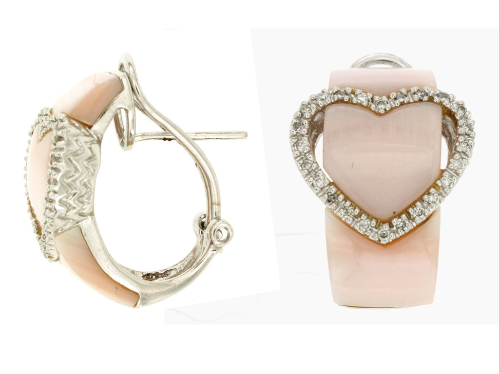 ESTATE .2CT DIAMOND & AAA MOTHER OF PEARL 14K WHITE GOLD HEART FILIGREE EARRINGS