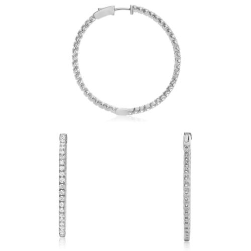 ESTATE 3.01CT DIAMOND 14K WHITE GOLD 3D CLASSIC INSIDE OUT HOOP HANGING EARRINGS
