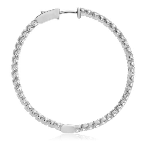 ESTATE 14KT WHITE GOLD HOOP HANGING EARRINGS. 3D CLASSIC INSIDE OUT DESIGN. DIAMONDS ARE F/G COLOR, VSSI CLARITY 3.01 CARATS.  MEASURES 39mm X 35mm. WRITTEN APPRAISAL AVAILABLE. COMES IN A PRESENTABLE GIFT BOX.