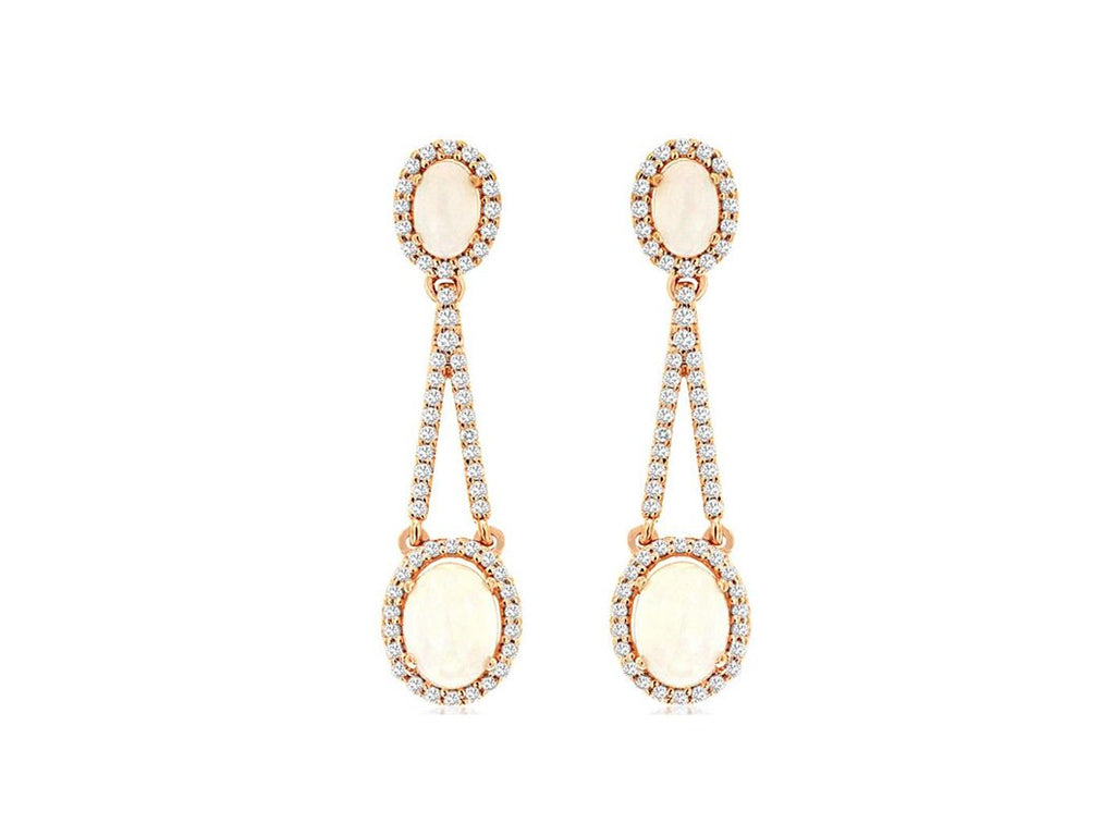 ESTATE 3.07CT DIAMOND & AAA OPAL 14KT ROSE GOLD 3D OVAL & ROUND HANGING EARRINGS