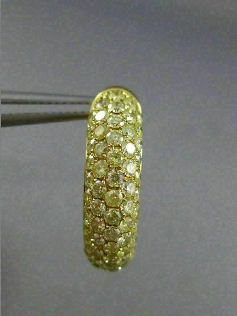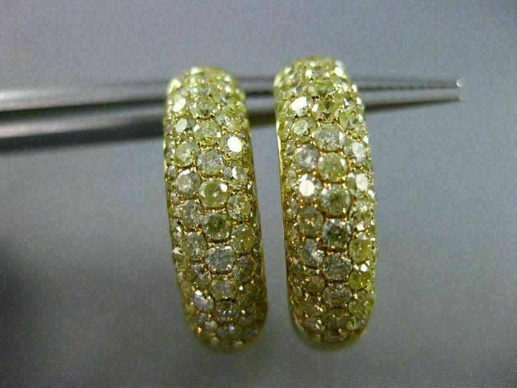 ESTATE 18KT YELLOW GOLD HOOP EARRINGS. 3D DOUBLE SIDED DESIGN. FANCY YELLOW DIAMONDS ARE 3.22 CARATS. MEASURES 23MM X 5.5MM WIDE. WRITTEN APPRAISAL AVAILABLE. COMES IN A PRESENTABLE GIFT BOX.