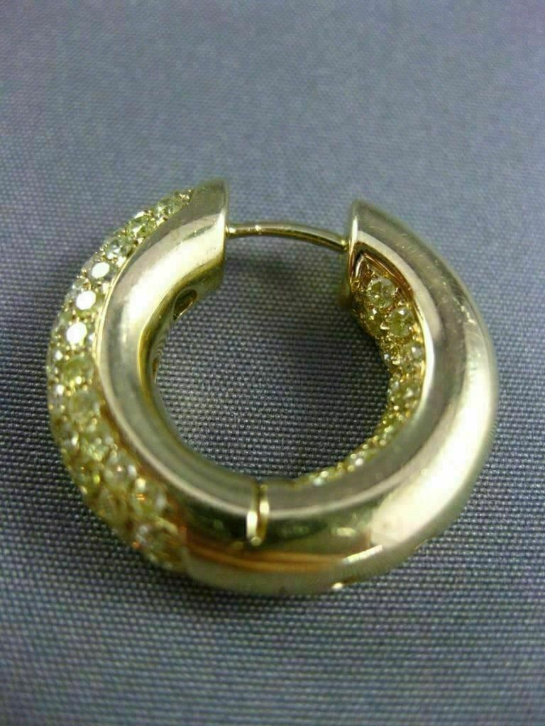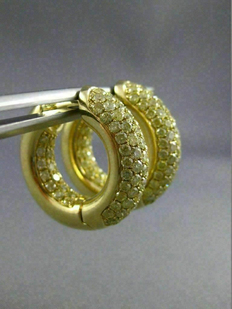ESTATE 3.22CT FANCY YELLOW DIAMOND 18K YELLOW GOLD 3D DOUBLE SIDED HOOP EARRINGS