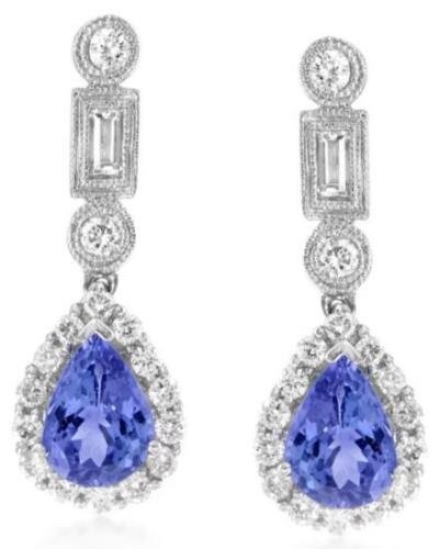 ESTATE 3.29CT DIAMOND & AAA TANZANITE 18K WHITE GOLD FILIGREE TEAR DROP EARRINGS