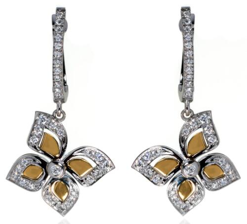 ESTATE 18KT WHITE AND YELLOW GOLD LEVERBACK HANGING EARRINGS. 3D CLASSIC BUTTERFLY DESIGN. DIAMONDS ARE F/G COLOR, VSSI CLARITY .30 CARATS. WRITTEN APPRAISAL AVAILABLE. COMES IN A PRESENTABLE GIFT BOX.