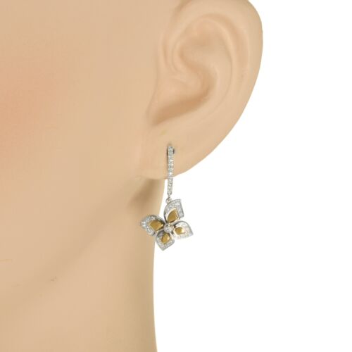 ESTATE .30CT DIAMOND 18KT 2 TONE GOLD 3D BUTTERFLY LEVERBACK HANGING EARRINGS