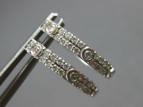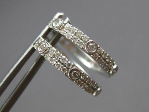 ESTATE .32CT DIAMOND 14KT WHITE GOLD 3D 2 ROW BEZEL HUGGIE HOOP HANGING EARRINGS