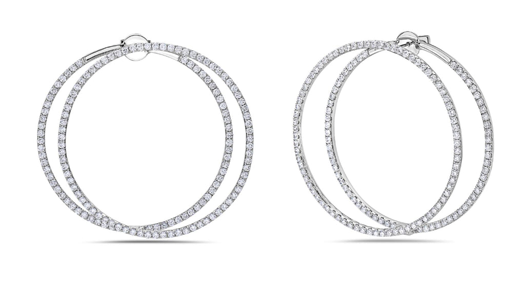 ESTATE 3.30CT DIAMOND 18KT WHITE GOLD 3D DOUBLE HOOP SIDEWAYS HANGING EARRINGS